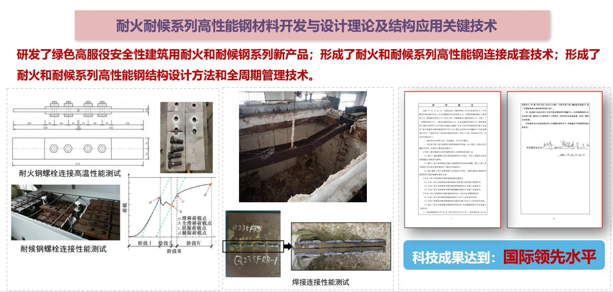 鋼結構中心圍繞工程技術研發創新平臺,根據鋼結構領域的發展趨勢和自身的特點,形成了多項行業領先的科研成果。